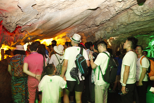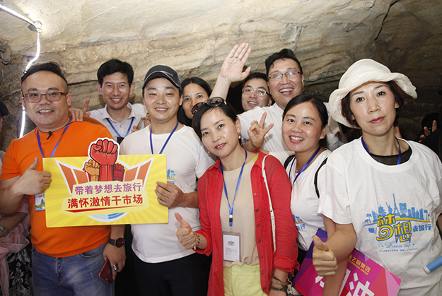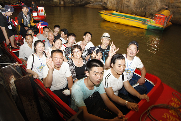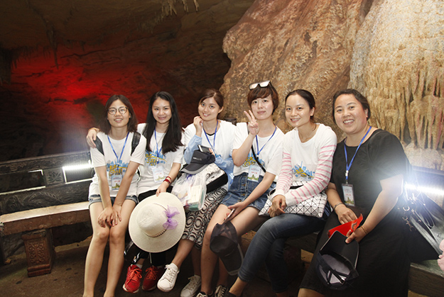 炙陽(yáng)高照,黃龍洞自然空調(diào)帶來(lái)的清涼是送給伙伴們的第一份禮物。黃龍洞是“世界溶洞全能冠軍”,超過(guò)10萬(wàn)平方米的龐大洞穴空間,立體的洞穴結(jié)構(gòu),高大的洞穴瀑布,寬闊的龍宮廳及數(shù)以萬(wàn)計(jì)的石筍,仿佛一座神奇的地下“魔宮”。綠之韻家人們穿梭其中,無(wú)所不奇,無(wú)奇不有,深深陶醉在大自然神奇的懷抱里,驚嘆不已。