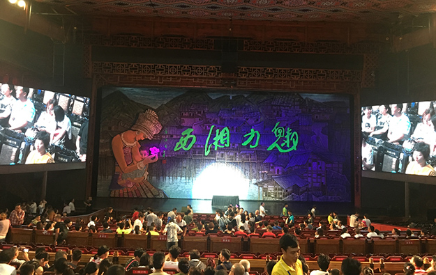 入夜的張家界微風(fēng)輕拂,風(fēng)情十足。到達(dá)張家界的第一天,綠之韻家人們乘著月色前往觀看“魅力湘西”大型文藝節(jié)目?!镑攘ο嫖鳌笔窍嫖魑幕目s影,在保留湘西原生態(tài)民俗文化的前提下,將民族音樂(lè)和舞蹈與聲、光、電完美結(jié)合,讓觀眾欣賞到一臺(tái)原汁原味的湘西文化大餐,是當(dāng)?shù)厣贁?shù)民族風(fēng)俗的靈魂。綠之韻伙伴們興高采烈地盡情觀賞,直到節(jié)目結(jié)束都意猶未盡。