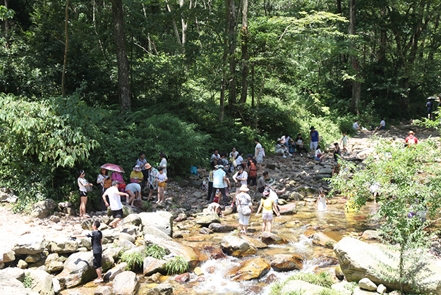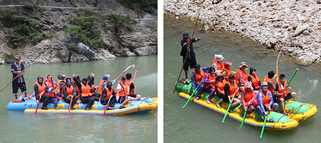 炎炎夏日,伙伴們對(duì)水的渴望更加強(qiáng)烈。張家界旅行的重頭戲便是前往素有“天下第一漂”美譽(yù)的猛洞河漂流,感受與水搏斗的激情和清涼。從“哈妮宮”出發(fā),順?biāo)?,一葉扁舟,在原始次生林的高山峽谷之中,綠之韻營(yíng)銷(xiāo)精英們身著救身衣、乘皮舟、闖險(xiǎn)灘、博激流,沿途觀美景、沐瀑流、打水仗、過(guò)峽關(guān),出沒(méi)浪端谷底,激情高漲之時(shí),忍不住放歌長(zhǎng)嘯,戲水嘻鬧,找回快樂(lè)童真的自我。