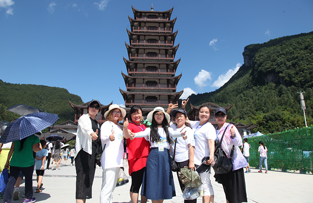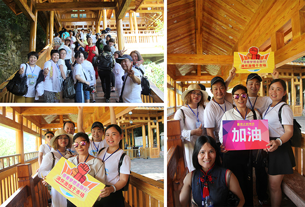 行程第三天,綠之韻家人們迎來(lái)了游覽張家界國(guó)家森林公園的激情挑戰(zhàn)。天子山是武陵源區(qū)四大風(fēng)景之一,這里不但有奇山秀水,還有淳樸的民情、奇特的民俗和獨(dú)具風(fēng)味的民族食品。進(jìn)入景區(qū),綠之韻營(yíng)銷(xiāo)精英們統(tǒng)一乘坐“世界第一梯”百龍?zhí)焯萆仙?。百龍?zhí)焯輾鈩?shì)恢宏,因其“世界上最高、運(yùn)行速度最快、載重量最大的電梯”而被載入吉尼斯世界紀(jì)錄。家人們乘電梯以5米/秒的速度上山,慷慨科技進(jìn)步的同時(shí),驚嘆于張家界的高山絕景和大自然的鬼斧神工。山上風(fēng)景如畫(huà),綠之韻人游覽其中樂(lè)趣無(wú)窮。從袁家界到十里畫(huà)廊,營(yíng)銷(xiāo)精英們冒著烈日,拾級(jí)而上,相互鼓勵(lì),跨越過(guò)七千多級(jí)臺(tái)階,走完了全程。一路上,留下了綠之韻人的堅(jiān)毅腳步和歡聲笑語(yǔ)!
