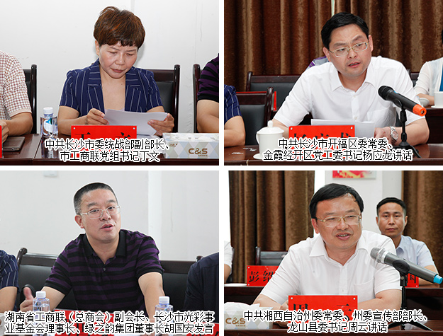 長(zhǎng)沙市政協(xié)副主席、市工商聯(lián)主席彭繼球在講話中表示,此次市政協(xié)、市委統(tǒng)戰(zhàn)部、市工商聯(lián)、長(zhǎng)沙金霞經(jīng)開(kāi)區(qū)組織來(lái)到龍山縣對(duì)口扶貧活動(dòng),深入對(duì)接,精準(zhǔn)幫扶,希望在各方努力下,有效推進(jìn)各對(duì)口扶持項(xiàng)目的實(shí)施,發(fā)揮長(zhǎng)沙市特色優(yōu)勢(shì),集結(jié)各方力量和資源,共同發(fā)力,為龍山的精準(zhǔn)脫貧加油助力。中共長(zhǎng)沙市委常委、市委統(tǒng)戰(zhàn)部部長(zhǎng)譚小平在講話中指出,市委市政府、市工商聯(lián)帶著責(zé)任、感情和友誼過(guò)來(lái),針對(duì)龍山縣進(jìn)行精準(zhǔn)扶貧、對(duì)口幫扶,我們有信心有決心有責(zé)任將精準(zhǔn)扶貧落到實(shí)處,希望有更多像綠之韻這樣省內(nèi)知名企業(yè)在資金、項(xiàng)目等方面加大對(duì)湘西州龍山縣的傾斜支持,幫助貧困地區(qū)加快脫貧發(fā)展;龍山縣貧困群眾也要發(fā)揚(yáng)自力更生、艱苦奮斗的精神,在當(dāng)?shù)攸h委政府的幫助下,盡早脫貧致富。