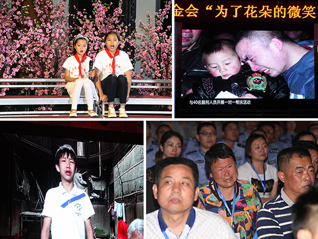 活動現(xiàn)場,監(jiān)獄警察、志愿者、社會愛心人士、服刑人員及其家屬代表聯(lián)合傾情獻(xiàn)上了一場精彩紛呈的演出,通過情景小品、小合唱等形式表達(dá)了服刑人員對回歸家庭、回歸社會的渴求,以及社會各界對失足人員的關(guān)愛。節(jié)目內(nèi)容積極向上、感人至深。
