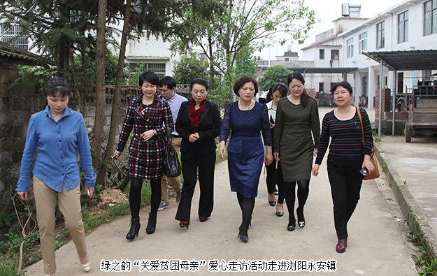 2017年4月18日,由湖南省婦聯(lián)、綠之韻集團(tuán)黨委、湖南省綠之韻公益基金會聯(lián)合主辦的“關(guān)愛貧困母親”愛心走訪活動(dòng)走進(jìn)瀏陽市永安鎮(zhèn)。湖南省婦聯(lián)副主席盧妹香,湖南省婦女兒童發(fā)展基金會副理事長兼秘書長周萍,長沙市婦聯(lián)副主席鐘小珍,長沙市婦聯(lián)副縣級干部劉臘香,瀏陽市婦聯(lián)主席龍花明,綠之韻集團(tuán)總裁、綠之韻公益基金會理事長勞嘉,綠之韻集團(tuán)黨委書記劉云等參加本次活動(dòng),為患病的貧困母親送去溫暖與關(guān)懷。