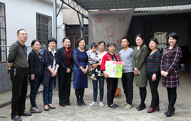 隨后,湖南省婦聯(lián)副主席盧妹香一行在勞嘉總裁的陪同下,來到瀏陽市永安鎮(zhèn)平頭村、水山村愛心走訪患癌的貧苦母親,為她們送去愛心慰問金和物品。