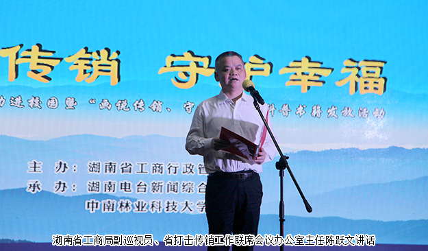 19時許,“防范傳銷進校園暨打擊傳銷科普宣傳冊的發(fā)放儀式”正式啟動,湖南省工商局副巡視員、省打擊傳銷工作聯(lián)席會議辦公室主任陳躍文在講話中表示,當(dāng)前大學(xué)生就業(yè)形勢比較嚴(yán)峻,一些傳銷組織利用大學(xué)生涉世不深和急于求職的心理,打著介紹工作、兼職招聘、加盟經(jīng)營、微商代理等幌子,不擇手段地利誘、欺騙高校學(xué)生從事傳銷活動。防止傳銷進校園,對保護廣大學(xué)生的切身利益和人身安全,維護高校和社會穩(wěn)定將起到積極的作用。