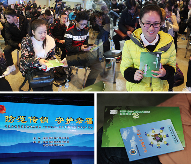 發(fā)放儀式上,省工商局、省打傳辦人員、中南林科大學(xué)子通過情景劇、相聲曲藝、知識搶答等豐富多彩的形式給廣大師生上了一堂生動有趣的防范傳銷知識課,并將“畫說傳銷、守護幸?!笨破招麄鲀悦赓M發(fā)放。據(jù)了解,已經(jīng)印制出的近100000冊“畫說傳銷、守護幸福”科普宣傳冊將陸續(xù)發(fā)放到全省,讓更多的民眾了解傳銷的危害、認(rèn)清傳銷的本質(zhì),讓傳銷無處遁形。