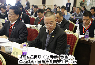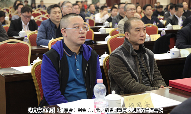 2016年11月29日上午,湖南省委非公有制經(jīng)濟工作會議在湖南賓館召開。中共湖南省委副書記、省人民政府代省長許達哲,中共湖南省委常委、省人民政府常務(wù)副省長陳向群,中共湖南省委常委、長沙市委書記易煉紅,中共湖南省委常委、省紀委書記傅奎,中共湖南省委常委、省委政法委書記、省人民政府副省長、省公安廳廳長黃關(guān)春,中共湖南省委常委、省委統(tǒng)戰(zhàn)部部長黃蘭香,湖南省人民政府副省長、省工商聯(lián)主席何報翔,湖南省人民政府副省長張劍飛,湖南省政協(xié)副主席、民盟省委主委、省國土資源廳副廳長楊維剛等出席會議,湖南省工商聯(lián)(總商會)副會長、綠之韻集團董事長胡國安出席本次會議。