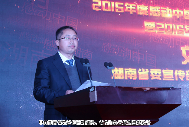會上,中共湖南省委宣傳部副部長、省文明辦主任劉進(jìn)能為活動(dòng)致辭。湖南省人大常委會副主任李友志發(fā)表重要講話,他在講話中指出:通過“感動(dòng)湖南”活動(dòng)的開展,希望在全社會營造一種助人為樂、積極向上的良好氛圍,激蕩起人們向上、向善的信心和勇氣。無論是今天站在舞臺上的2015年度“感動(dòng)湖南人物”,還是評選入圍2016年度的“感動(dòng)湖南”人物代表,他們無不向全社會展示了敢為人先、無私大愛的湖南風(fēng)骨。我們要向這些善行好人、行業(yè)榜樣致敬!