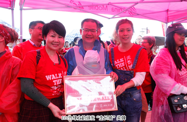 2016年10月22日,綠之韻愛心志愿者們?cè)诰G之韻集團(tuán)黨委書記劉云、綠之韻公益基金會(huì)秘書長(zhǎng)蔣文的帶領(lǐng)下,與1000多名ICC來自各地的志愿者、愛心義工們一起集結(jié)長(zhǎng)沙洋湖濕地公園,進(jìn)行為愛“走長(zhǎng)城”公益活動(dòng)。
