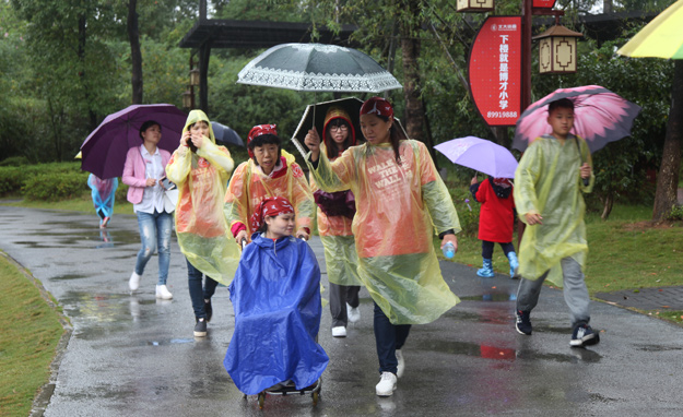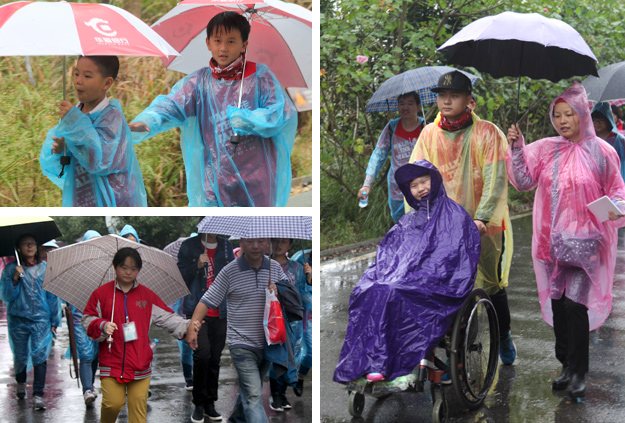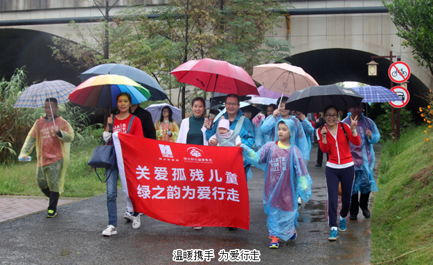 “愛使我們?cè)谝黄?,我們手拉手;愛是我們的回答,面?duì)挑戰(zhàn);希望是我們的祝福,手拉手、心相連,我們是一家人?!睈坌闹驹刚邆?nèi)宄扇?,沿著既定的線路徒步前行,大家或打著雨傘、或穿著雨衣,以眼神鼓勁,用微笑問候,憑借著堅(jiān)韌的意志和奉獻(xiàn)愛心的渴望,全部走完既定的環(huán)公園路程,安全返回,互致勝利的祝福,并合影紀(jì)念。