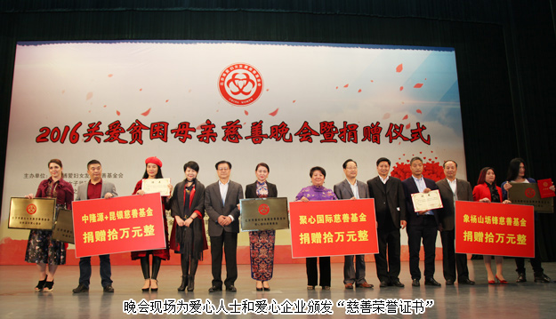 為愛歌唱,用心發(fā)聲,用行動去改變。晚會現(xiàn)場啟動了安娜國際愛心基金、閆國超藝術(shù)愛心基金、聚心國際慈善基金、明清感恩社慈善基金等8個專項基金,得到了眾多的愛心人士、企業(yè)及國際慈善友人的愛心捐贈,共募集款物280多萬元。綠之韻集團黨委書記劉云代表綠之韻公益基金會為愛心企業(yè)頒發(fā)榮譽證書,并動情表示:作為家庭的核心,沒有幸福的母親,就沒有幸福的家庭。在貧困人口中,貧困母親的生活境遇最為艱辛。我們要在生活上幫助她們,在經(jīng)濟上資助她們,在精神上關心她們。幫助了一個貧困母親,就是幫助了一個家庭;每一個母親的改變,就是無數(shù)個家庭的受益。