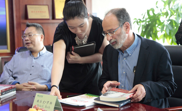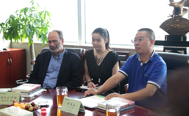 訪問期間,埃爾文·羅斯教授饒有興致地參觀了綠之韻集團總部,詳細了解公司架構、產(chǎn)品研發(fā)、生產(chǎn)經(jīng)營、產(chǎn)業(yè)布局、基地建設、上市進程和愿景規(guī)劃等方面的情況,并予以高度肯定和贊許。隨后,他同郭力夫主任、胡遠江教授、胡國安董事長、勞嘉執(zhí)行總裁等進行座談會,就目前世界經(jīng)濟發(fā)展趨勢、中國企業(yè)經(jīng)濟新形勢下如何轉型升級等話題進行了深入探討。