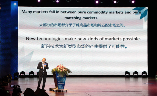 在全場最為熱烈與期待的掌聲中,埃爾文·羅斯教授帶來了“共享經(jīng)濟(jì)與市場設(shè)計(jì)”主題演講,他向觀眾展示了他的最新研究成果,提出了“共享經(jīng)濟(jì)時(shí)代,市場設(shè)計(jì)的核心在于匹配的穩(wěn)定”的理論,并通過案例深刻解析了“匹配市場”如何進(jìn)行市場分配以達(dá)到優(yōu)化市場資源配置,提高市場運(yùn)行的效率。