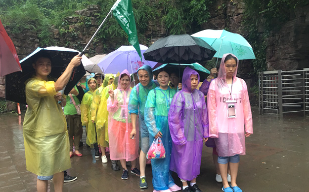 天公不作美,進(jìn)入武陵源景區(qū)后,張家界下起了雨,家人們紛紛穿上了五顏六色的雨衣,為濃郁的森林添加了一抹亮麗的風(fēng)采。在確保安全的情況下,綠之韻的家人們都不懼風(fēng)雨,跨越過七千多級(jí)臺(tái)階,走完了全程,每個(gè)腳印都鐫刻著綠之韻人的堅(jiān)毅!一位營(yíng)銷精英說道:“來張家界隨時(shí)都有山看,可是雨中張家界,如此云霧繚繞的仙境實(shí)在難得!”