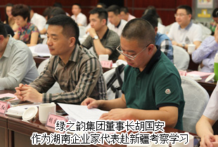 2016年6月18—20日,由新疆兵團(tuán)團(tuán)委、中國青年企業(yè)家協(xié)會(huì)共同舉辦的“中國青年企業(yè)家兵團(tuán)行”經(jīng)貿(mào)考察活動(dòng)舉行,來自全國各地的70余名知名青年企業(yè)家齊聚烏魯木齊參加此次活動(dòng),中國青年企業(yè)家協(xié)會(huì)常務(wù)理事、湖南省青年企業(yè)家協(xié)會(huì)副會(huì)長、綠之韻集團(tuán)董事長胡國安作為湖南企業(yè)家代表赴新疆考察學(xué)習(xí)。