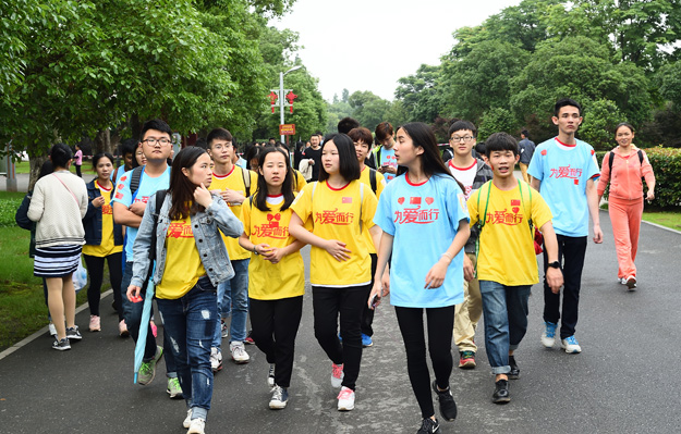 從橘子洲頭毛澤東青年藝術(shù)雕像處出發(fā),大家三五成群,沿著既定的線路徒步前行,相識的、不相識的,大家揮舞雙手,以眼神鼓勁,用微笑問候,朝著一個共同的夢想、共同的愛心、共同的追求邁進(jìn)。行走隊伍吸引了許多民眾的廣泛關(guān)注,民眾們自發(fā)自覺融入到愛心隊伍當(dāng)中。此次行走活動途徑攬月亭、橘洲客棧、詩詞碑、桃園等景點,湘江兩岸風(fēng)光盡收眼底,沿途的歡聲笑語和美麗風(fēng)景讓大家忘記了行走的疲勞。