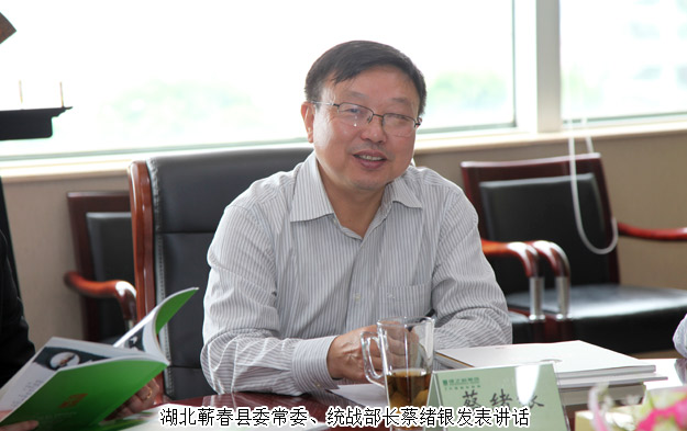 2016年4月29日,中共湖北蘄春縣委常委、統(tǒng)戰(zhàn)部長蔡緒銀,蘄春縣人大常委會副主任紀(jì)必明,蘄春縣人民政府副縣長石玉艷,蘄春縣臺辦主任毛裕華,蘄春縣招商局副局長丁威,中共湖南省委統(tǒng)戰(zhàn)部經(jīng)濟(jì)處副處長陳勝等一行蒞臨綠之韻考察調(diào)研,綠之韻集團(tuán)董事、執(zhí)行總裁勞嘉,辦公室主任馮紅等陪同考察。