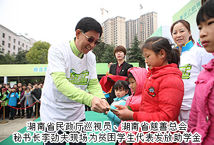 綠韻健跑,大愛隨行。活動現(xiàn)場,10位來自瀏陽烏石村的貧困學生代表在“綠跑”啟動儀式上獲得愛心捐贈。湖南省民政廳巡視員、湖南省慈善總會秘書長李勁夫上臺發(fā)表講話,他表示,今年全國兩會上,中國首部《慈善法》通過審議。綠之韻作為具有高度責任感民族企業(yè),一直從事社會公益慈善事業(yè),是整個湖南省的企業(yè)公民旗幟代表。全民綠跑,堅持“健康+慈善”的公益理念便是《慈善法》的生動體現(xiàn)和最好宣傳。愛心改變命運,希望更多有愛心的人士和企業(yè)都能參與到公益慈善活動中來,幫助需要幫助的人一起脫貧致富,奔向小康。據(jù)悉,按照“綠跑”活動規(guī)則,每一名在45分鐘內跑完5公里全程的選手,都能募得由綠之韻公益基金會提供的1000元善款,用于面向貧困山區(qū)失學兒童、孤殘兒童、患病兒童群體的“綠+兒童關愛”精準扶貧項目。