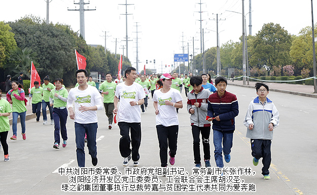 因夢凝聚,為愛出發(fā)。綠之韻人洋溢青春與活力,承載滿滿的正能量,用速度與激情,邁開堅實而有力的步伐,向著愛和夢想奔跑。2016年3月26日上午,由湖南省慈善總會指導,瀏陽市人民政府、國家級瀏陽經濟技術開發(fā)區(qū)主辦,綠之韻集團承辦的2016綠之韻大型全民公益計劃”(以下簡稱“綠跑”)在國家級瀏陽經濟技術開發(fā)區(qū)熱力開跑。