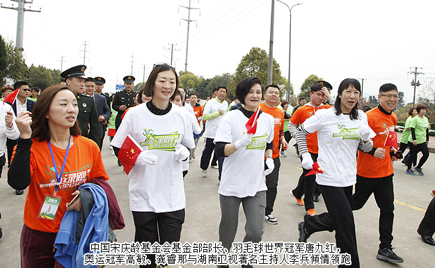 湖南省民政廳巡視員、湖南省慈善總會秘書長李勁夫,湖南省民政廳民間組織管理局副調研員鄂立輝,國家級瀏陽經濟開發(fā)區(qū)管委員會主任郭力夫,中共瀏陽市委常委、市政府黨組副書記、常務副市長張作林,瀏陽經濟開發(fā)區(qū)黨工委委員、工會聯(lián)合會主席胡漢圣蒞臨活動現(xiàn)場,中國宋慶齡基金會基金部部長、羽毛球世界冠軍唐九紅,奧運冠軍高敏、錢紅、王麗萍、龔睿那,湖南衛(wèi)視著名主持人李兵等明星大咖傾情助陣。綠之韻集團董事長胡國安,快樂汽車集團、快樂紅館傳媒董事長周曄,綠之韻集團董事執(zhí)行總裁勞嘉攜高管團隊、集團戰(zhàn)略委委員等,以及來自全國各地的2000多名綠之韻家人共同參與了此次活動,一起為愛奔跑,為健康中國加油!