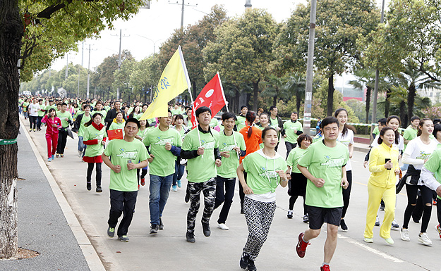隨著一聲清脆的發(fā)令槍聲,2000多名綠跑選手如離弦之箭沖出起跑線。參與跑步的人群中有專業(yè)的體育健將、也有跑步愛好者,有年近7旬的老人、也有天真爛漫的孩子,有來自瀏陽經開區(qū)周邊的居民、也有從湖南、黑龍江、內蒙古、河北、遼寧、山東、吉林等地遠道而來的綠之韻家人。大家在鏡頭前掩飾不住內心的興奮:“難得有機會參加這種公益健康跑活動,和電視明星、奧運冠軍一起跑腳下更有勁,鍛煉身體的同時還能做公益幫助別人!”