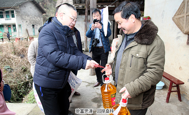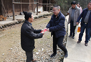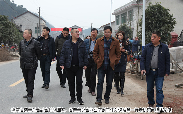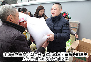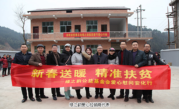 春節(jié)將至,鄉(xiāng)音裊裊,聊敘家鄉(xiāng)情;綠韻大愛,恩情悠悠,反哺桑梓心。2016年2月4日,中共安化縣委常委、政法委書記羅必勝,湖南省慈善總會副會長、綠之韻集團(tuán)董事長胡國安,湖南省慈善總會辦公室副主任劉謀益,湖南省志愿服務(wù)指導(dǎo)中心副主任蔣鐵陽,安化縣慈善總會辦公室主任肖晟,中共安化縣冷市鎮(zhèn)黨委書記周華山、鎮(zhèn)長楊鋒,綠之韻公益基金會秘書長蔣文及愛心志愿者代表等一行來到湖南省安化縣冷市鎮(zhèn)胡家村,為鄉(xiāng)親們送上慰問金、米、油和日用品等物資,為他們送去新春的祝福。湖南都市頻道、紅網(wǎng)、瀟湘晨報(bào)、安化電視臺等多家媒體對本次愛心慰問活動(dòng)進(jìn)行了報(bào)道。