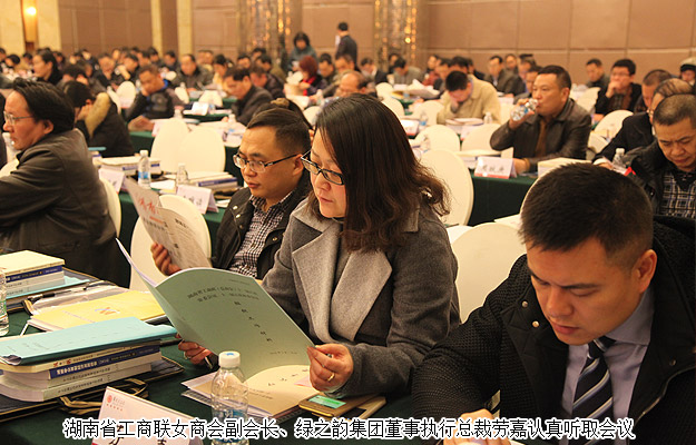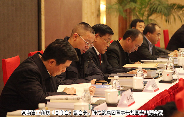 2016年1月11日,湖南省工商聯(lián)(總商會)十一屆六次常委會議、十一屆五次執(zhí)委會議在長沙召開,大會總結(jié)2015年工作,部署2016年任務(wù),會上還發(fā)出“積極參與‘萬企幫萬村’精準(zhǔn)扶貧”的行動倡議。湖南省副省長、省工商聯(lián)(總商會)主席何報(bào)翔出席會議并講話。湖南省發(fā)改委副主任王亮方,湖南省工商聯(lián)(總商會)副會長、綠之韻集團(tuán)董事長胡國安,湖南省工商聯(lián)女商會副會長、綠之韻集團(tuán)董事執(zhí)行總裁勞嘉以及湖南省工商聯(lián)(總商會)全體副主席、副會長、常執(zhí)委,駐湘副省級以上地區(qū)異地商會會長、秘書長,省委統(tǒng)戰(zhàn)部、省工商聯(lián)機(jī)關(guān)處室負(fù)責(zé)人參加會議。