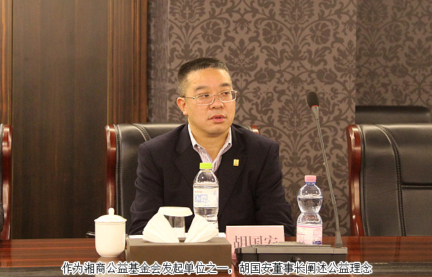 2016年1月5日,湖南省工商聯(lián)(總商會(huì))全體主席會(huì)長(zhǎng)召開(kāi),中共湖南省委常委、省委統(tǒng)戰(zhàn)部部長(zhǎng)黃蘭香,湖南省副省長(zhǎng)、省工商聯(lián)主席何報(bào)翔等出席會(huì)議并講話。同時(shí),由省工商聯(lián)、綠之韻集團(tuán)、愛(ài)爾眼科等聯(lián)合籌資600萬(wàn)元成立的湖南省湘商公益基金會(huì)在本次會(huì)議中正式成立。中共湖南省委常委、省委統(tǒng)戰(zhàn)部部長(zhǎng)黃蘭香為基金會(huì)成立授牌,綠之韻集團(tuán)董事長(zhǎng)胡國(guó)安作為湖南省工商聯(lián)(總商會(huì))副會(huì)長(zhǎng)、湘商公益基金會(huì)副理事長(zhǎng)出席會(huì)議。