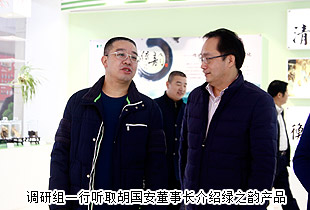 調(diào)研組一行首先參觀了綠之韻集團(tuán)大樓,聽取了胡國安董事長對綠之韻系列產(chǎn)品、集團(tuán)總部辦公區(qū)、企業(yè)資質(zhì)和榮譽(yù)展示區(qū)的介紹。綠之韻“以產(chǎn)品為導(dǎo)向的體驗式營銷模式”和“移動互聯(lián)網(wǎng)+直銷”的發(fā)展戰(zhàn)略,優(yōu)質(zhì)的產(chǎn)品研發(fā)體系、產(chǎn)學(xué)研合作模式以及良好的企業(yè)形象得到了考察組各位領(lǐng)導(dǎo)的高度認(rèn)可和贊譽(yù)。