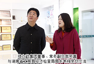 大眾創(chuàng)業(yè)、萬眾創(chuàng)新。適應(yīng)“互聯(lián)網(wǎng)+”,樹立“大數(shù)據(jù)思維”,踏上企業(yè)創(chuàng)新發(fā)展新征程。為深入了解湖南民營企業(yè)如何運用互聯(lián)網(wǎng)思維,激發(fā)企業(yè)發(fā)展新動力,迎接大數(shù)據(jù)時代背景下的機(jī)遇與挑戰(zhàn),2015年12月7日,湖南省工商局黨組成員、副局長魯先華,湖南省工商局經(jīng)濟(jì)檢查局局長韋翔,湖南省工商局經(jīng)濟(jì)檢查局副局長肖向陽等領(lǐng)導(dǎo)一行蒞臨綠之韻集團(tuán)考察調(diào)研。綠之韻集團(tuán)董事長胡國安、董事常務(wù)副總裁勞嘉等全程陪同調(diào)研。