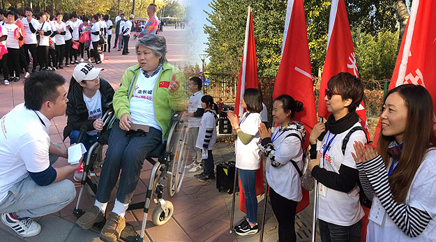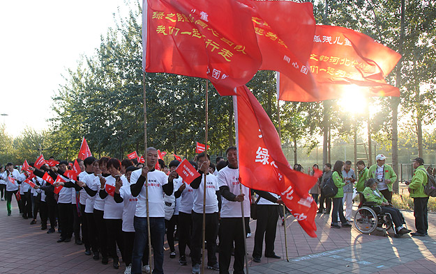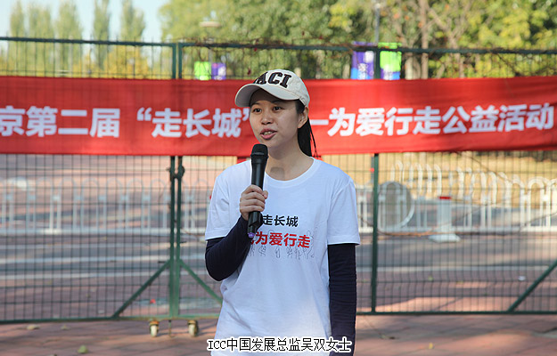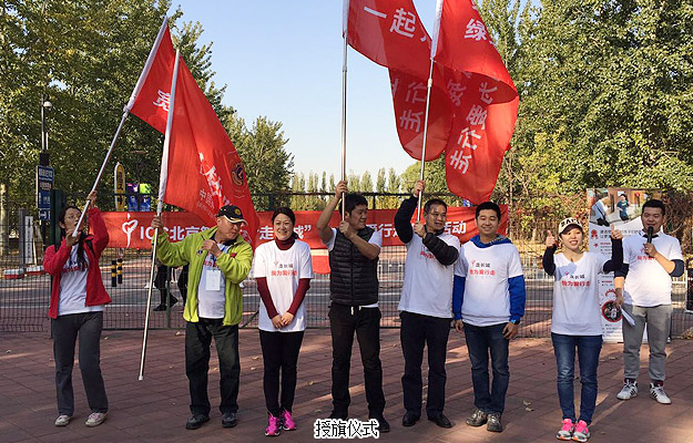 下午14時許,ICC全球第九屆“走長城”(北京站)公益活動舉行了簡短的啟動儀式?;顒又鞒秩撕唵谓榻B了“為愛行走”的活動流程。從事公益16年的ICC中國發(fā)展總監(jiān)吳雙女士為活動致辭,綠之韻集團董事常務(wù)副總裁勞嘉發(fā)表講話:“今年,ICC全球‘走長城’已經(jīng)走過九個年頭,綠之韻愛心志愿者已經(jīng)連續(xù)兩屆參加了為愛行走(北京站)公益活動。未來,綠之韻集團、綠之韻公益基金會將積極響應(yīng)國家‘健康中國’、‘美麗中國’的號召,繼續(xù)堅持‘關(guān)愛生命、回報社會’的經(jīng)營理念,一如既往、再接再厲,帶動和影響更多的愛心企業(yè)、愛心人士加入到關(guān)愛孤殘兒童的行列,集結(jié)愛、奉獻愛,集涓成流,匯愛成海,讓健康、美麗和愛成為我們每一位國人生命的習(xí)慣?!彪S后,勞嘉副總裁和吳雙總監(jiān)一起為參加本次活動的愛心志愿者團隊授旗,并宣布北京朝陽公園為愛行走公益活動正式啟動。