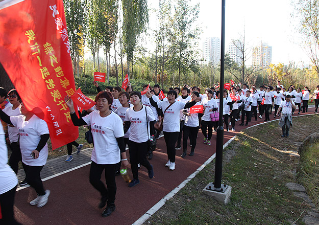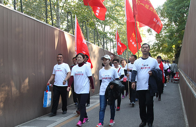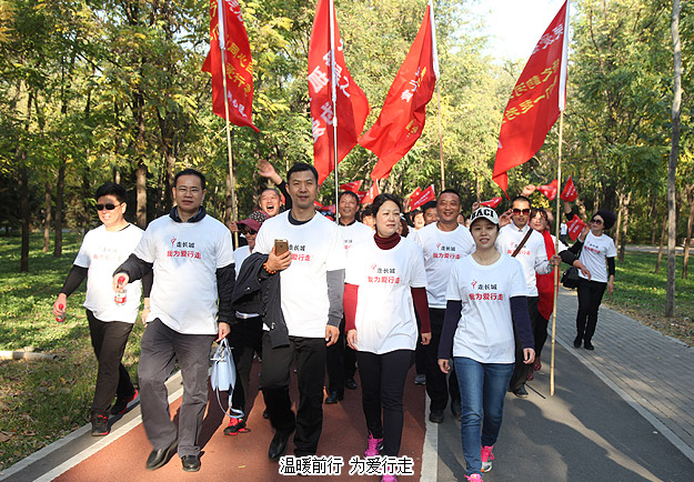 大家三五成群,從朝陽公園東5門出發(fā),沿著既定的線路徒步前行,相識的、不相識的,大家揮舞慈善紅旗,以眼神鼓勁,用微笑問候,朝著一個共同的夢想、共同的愛心、共同的追求邁進。在這條人流中,匯聚著綠之韻愛心經(jīng)銷商、公務(wù)員、知識分子、企業(yè)老板、務(wù)工人員、學(xué)生……彼此并不相識,博愛的名義卻把大家的心緊緊地連在了一起,誰人又不被感動呢?一陣氣喘吁吁,一身大汗淋漓,所有的愛心志愿者憑借著堅韌的意志和奉獻愛心的渴望,全部走完既定的6公里路程,安全返回,互致勝利的祝福,并合影紀念。