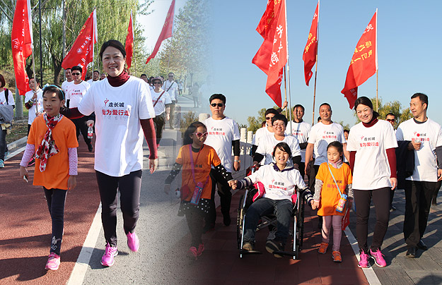“集涓成流,匯愛成海。作為同心人、綠之韻人,我們深知:如果我們每個人愿意行走1公里,然后相加,就可以走出很多個長城來;如果我們每個人愿意奉獻一點愛,集結(jié)全球熱心人士的愛,就可以幫助千千萬萬的孤殘兒童。此時此刻,綠之韻同心團隊伙伴走過的每一步都是滿滿的愛和信念。在我們的心里,朝陽公園就是愛的長城,每一步都是愛的禮贊和生命的延續(xù)……”綠之韻愛心志愿者李衛(wèi)玲在為愛行走途中興奮地說道。