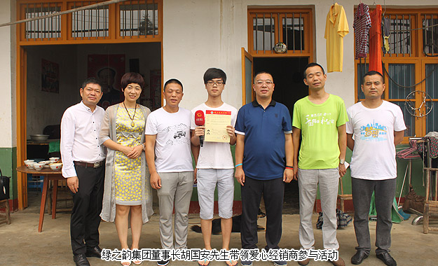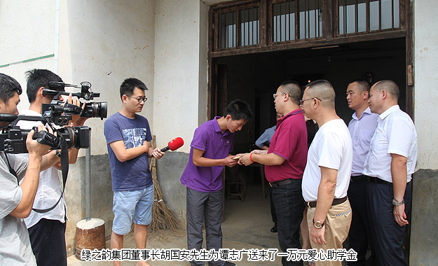 智廣以621分的高考成績考上了大連理工大學,綠之韻集團董事長胡國安先生與湖南地區(qū)的愛心經(jīng)銷商代表們?yōu)橹菑V送來了一萬元愛心助學金。胡國安董事長鼓勵智廣,暫時的困境并不可怕,最重要的是克服困難好好學習,勇敢地走出去,通過自己的努力,成為家人的驕傲,成為可以幫助別人的人。