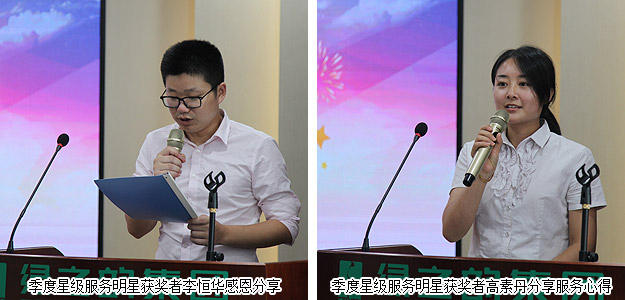 2015年新晉員工在大會(huì)上進(jìn)行了自我介紹和風(fēng)采展示,彰顯出新人積極向上的精神面貌。同時(shí),大會(huì)還對表現(xiàn)優(yōu)秀的員工和集體給予了隆重表彰:業(yè)務(wù)服務(wù)部、數(shù)據(jù)管理中心、產(chǎn)品綜合管理部、山東分公司、儲(chǔ)運(yùn)部榮獲“第二季度優(yōu)秀服務(wù)集體”;侯俊霞、李恒華、王艷、譚紅、陳建輝、李倩婷、王芬、高素丹、夏丹、曹峰、盧再林、劉圣雄、趙光意等十多位員工光榮成為“第二季度服務(wù)明星”;夏運(yùn)良、王芬、王壯在黨支部的領(lǐng)導(dǎo)下,積極參與黨組織各項(xiàng)活動(dòng),榮獲“綠之韻黨支部優(yōu)秀共產(chǎn)黨員”稱號。獲獎(jiǎng)部門代表、個(gè)人依次踏上領(lǐng)獎(jiǎng)臺(tái),享受大家的聲聲祝福和熱烈掌聲,分享快樂和喜悅。