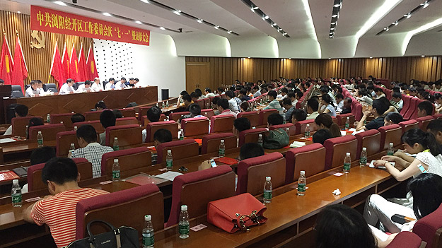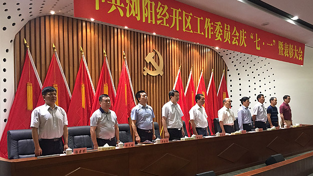 在莊嚴(yán)的國(guó)際歌聲中,大會(huì)開(kāi)啟帷幕。首先,園區(qū)黨工委委員、紀(jì)工委書(shū)記楊圍山同志作了題為《適應(yīng)全面從嚴(yán)治黨新常態(tài)、推動(dòng)黨建工作再上新臺(tái)階》的黨建工作匯報(bào)。他圍繞夯實(shí)黨建基礎(chǔ),切實(shí)履行黨建工作主體責(zé)任、著眼基層,有效推進(jìn)黨的基層組織建設(shè)、與時(shí)俱進(jìn),努力提升黨員干部隊(duì)伍素質(zhì)、踐行群眾路線,不斷增進(jìn)人民群眾血肉聯(lián)系、轉(zhuǎn)變作風(fēng),著力打造務(wù)實(shí)清廉執(zhí)政環(huán)境等五個(gè)方面闡述了如何狠抓創(chuàng)先爭(zhēng)優(yōu)。接著,園區(qū)黨工委委員、管委會(huì)副主任劉良成同志宣讀了中共瀏陽(yáng)經(jīng)濟(jì)技術(shù)開(kāi)發(fā)區(qū)工作委員會(huì)關(guān)于表彰2015年度先進(jìn)基層黨組織、優(yōu)秀黨務(wù)工作者和優(yōu)秀共產(chǎn)黨員的通報(bào)。