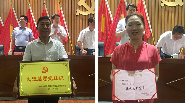 2015年6月26日,長(zhǎng)沙國(guó)家生物產(chǎn)業(yè)基地慶祝建黨94周年暨“七一”表彰大會(huì)在園區(qū)金陽(yáng)文化藝術(shù)中心隆重召開(kāi)。全體黨委領(lǐng)導(dǎo)、機(jī)關(guān)黨員以及非公經(jīng)濟(jì)黨組織負(fù)責(zé)人、優(yōu)秀黨員和2015年度新發(fā)展的預(yù)備黨員參加會(huì)議。會(huì)上,綠之韻集團(tuán)黨總支憑借出色的黨建工作再次被評(píng)為“先進(jìn)基層黨組織”,公司員工馮紅、湛亮、黃姣三位同志被評(píng)為園區(qū)“優(yōu)秀共產(chǎn)黨員”。