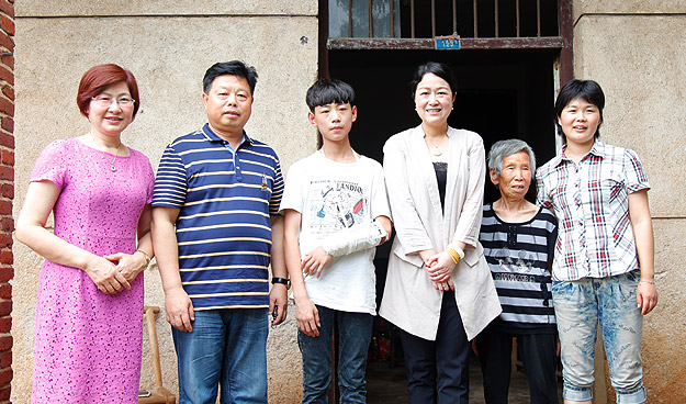 陽(yáng)宇楨媽媽滿臉笑容,正在為志愿者們準(zhǔn)備茶水,看著她溫和的樣子或許你不會(huì)想到她患有抑郁癥。陽(yáng)宇楨爸爸2009年確診為腸癌,手術(shù)過(guò)后還需要定期化療,在家里債臺(tái)高筑的情況下只能堅(jiān)持帶病工作,后又因?yàn)橐馔馐鹿仕钦?。媽媽因?yàn)榧抑羞B串變故出現(xiàn)精神異常的情況,也需要定期前往醫(yī)院復(fù)診。一家人輾轉(zhuǎn)來(lái)到瀏陽(yáng)。