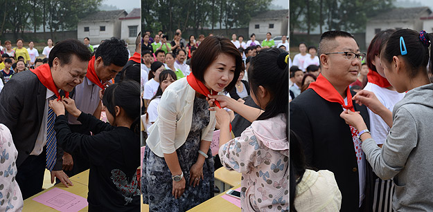 愛心助學(xué)儀式上,月山學(xué)校校長李勇翔致歡迎詞:“時隔一年時間,感謝綠之韻集團(tuán)對我校及孩子們的關(guān)愛,感謝綠之韻的家人們依然心存愛心,記得月山太平中學(xué)的孩子們。學(xué)校也會不辜負(fù)大家的希望,好好教育好學(xué)生,培養(yǎng)出更多對社會有用有愛心的的棟梁之才。”隨后,可愛的孩子們?yōu)槌鱿顒拥念I(lǐng)導(dǎo)、嘉賓以及綠之韻集團(tuán)的愛心經(jīng)銷商和志愿者們系上鮮艷的紅領(lǐng)巾,借此表達(dá)他們的無限感激之情。