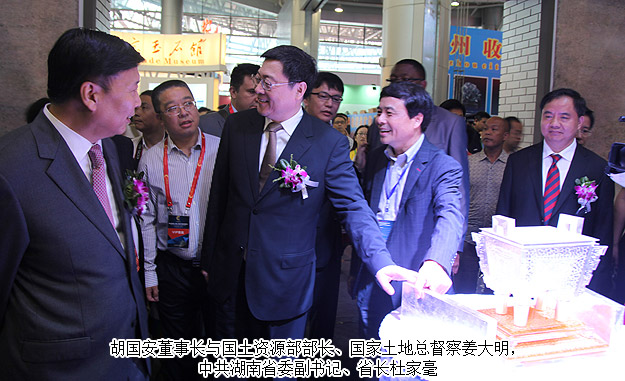 2015年5月21-25日, 由湖南省人民政府和國土資源部聯(lián)合主辦,省國土資源廳、長沙市政府、郴州市政府等聯(lián)合承辦的第三屆中國(湖南)國際礦物寶石博覽會在郴州舉行。國土資源部部長、黨組書記、國家土地總督察姜大明宣布第三屆礦博會開幕,湖南省委副書記、省長杜家毫出席開幕式并講話。中共湖南省委常委、常務(wù)副省長陳肇雄主持開幕式。湖南省工商聯(lián)(總商會)副會長、綠之韻集團(tuán)董事長胡國安受邀出席開幕式,并陪同國土資源部部長、黨組書記、國家土地總督姜大明,中共湖南省委副書記、湖南省人民政府省長杜家毫等領(lǐng)導(dǎo)一行視察展館。
