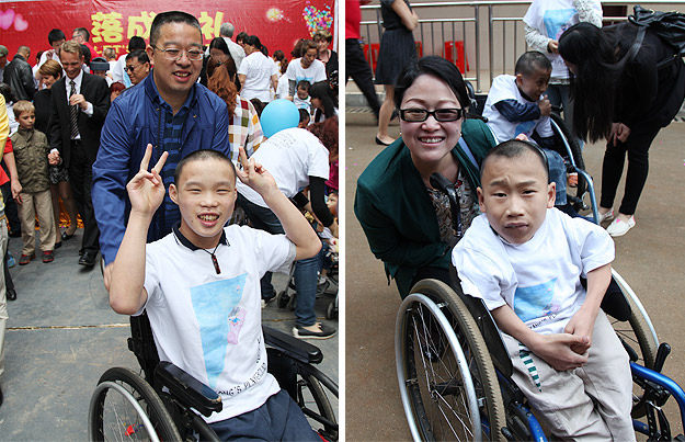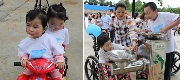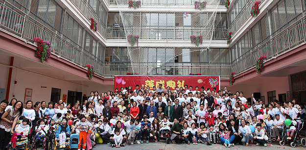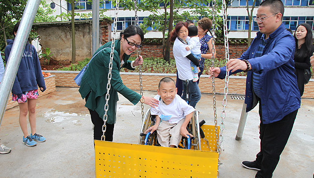 隨后,綠之韻愛心志愿者們與分配的小家庭一起,分組陪伴孩子們從新家院子到游樂場(chǎng)玩耍,同孩子們一起用餐和學(xué)習(xí)。雖然一些孩子動(dòng)作遲鈍、在語言交流上有一些困難,但孩子們很快和熱情的綠之韻的愛心志愿者們打成一片,玩得非常開心。胡國(guó)安董事長(zhǎng)和勞嘉副總裁親自為坐在輪椅上的小朋友系上特制秋千的綁帶,讓他們也感受到在秋千上飛起來感覺,孩子們的笑聲感染了現(xiàn)場(chǎng)每一個(gè)人。