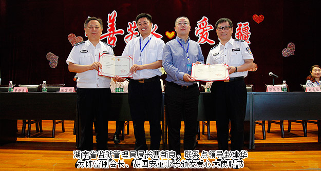 綠之韻關愛監(jiān)獄貧困母親,不僅在經(jīng)濟上給予支持,還隨同湖南省女子監(jiān)獄共同走訪湖南各地市服刑人員家庭,行程1700多公里,給這些貧困家庭里的老人、孩子送去愛的溫暖以及精神鼓勵?;顒又校鲜”O(jiān)獄管理局副局長曹新良、聯(lián)系點領導趙建華為陳富剛會長、胡國安董事長頒發(fā)愛心大使聘書。2013年,當綠之韻關愛貧困母親行動第一次走進湖南省女子監(jiān)獄時,胡國安董事長就為100名特困服刑母親發(fā)放愛心救助金20萬元。今天,他又再次走進女子監(jiān)獄為特困服刑母親進行愛心捐助。