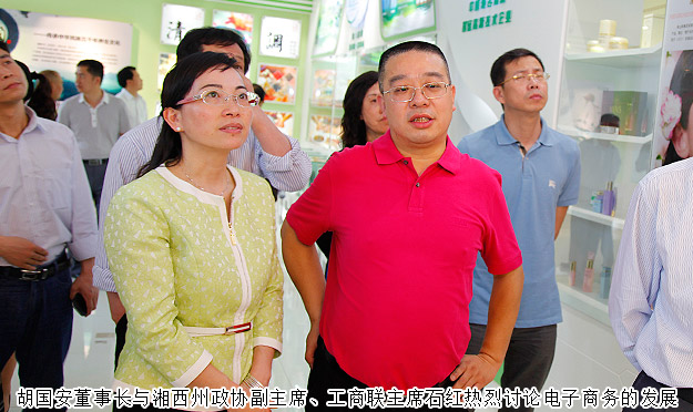 2015年5月7日,長沙市政協(xié)副主席、工商聯(lián)主席彭繼球,湘西州政協(xié)副主席、工商聯(lián)主席石紅,中共湘西州委統(tǒng)戰(zhàn)部副部長、工商聯(lián)黨組書記王小蘭等一行蒞臨綠之韻集團考察指導。綠之韻集團董事長胡國安、綠之韻集團(中國區(qū))副總經(jīng)理(全球營銷中心)劉維利全程陪同考察。