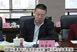 2015年4月15日上午,湖南省政協(xié)經濟科技委員會主任吳金明,省政協(xié)派駐省工商局(首批聘用)民主監(jiān)督員、綠之韻集團董事長胡國安等一行調研省工商局各處室,并認真聽取了省工商局商事制度改度后續(xù)進展情況和消費者權益保護工作情況的匯報。