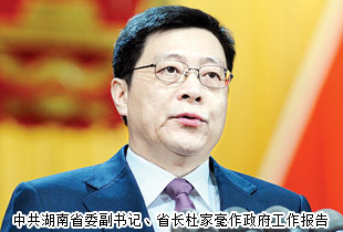 會議期間,十一屆省政協(xié)委員集體列席了省十二屆人大四次會議開幕式。在熱烈的掌聲中,省長杜家毫代表省人民政府作工作報告。報告分為三大部分:一是2014年工作回顧。二是2015年的形勢和主要工作。三是貫徹依法治國基本方略,努力建設(shè)法治政府。大會還表決通過了《湖南省第十二屆人民代表大會第四次會議補選辦法》。列席大會的還有:省人民政府組成人員,省高級人民法院、省人民檢察院負責人,部分在湘全國人大代表,省直有關(guān)機關(guān)團體、省管企業(yè)、中央在湘單位、本科院校負責人,省政府參事,縣市區(qū)人大常委會負責人。1月30日下午,湖南省政協(xié)十一屆三次會議召開選舉大會,馮海燕、畢華、李宗文、楊先杰、陳益枝、胡奇、姚增誼、賈龍武、高德文、龔健10位同志當選為政協(xié)湖南省第十一屆委員會常務(wù)委員,孫建國當選政協(xié)湖南省第十一屆委員會副主席。省政協(xié)十一屆三次會議在圓滿完成各項預定議程后,勝利閉幕。