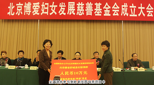 為加大扶貧力度,改善貧困母親生存與發(fā)展?fàn)顩r,進(jìn)而優(yōu)化貧困婦女及貧困母親生活環(huán)境以及家庭與社會(huì)和諧,促進(jìn)社會(huì)全面協(xié)調(diào)、可持續(xù)發(fā)展,北京博愛婦女發(fā)展慈善基金會(huì)主要啟動(dòng)了“貧困母親救助項(xiàng)目”、“女性再就業(yè)培訓(xùn)”、“特困服刑人員救助”等系列項(xiàng)目。全國(guó)政協(xié)副秘書長(zhǎng)張秋儉親臨新聞發(fā)布會(huì)并講話。中華慈善總會(huì)貧困母親救助項(xiàng)目管理辦公室主任、北京博愛婦女發(fā)展基金會(huì)會(huì)長(zhǎng)陳富剛先生介紹了基金會(huì)設(shè)立情況并發(fā)出呼吁“永遠(yuǎn)不要對(duì)他人的苦難無(wú)動(dòng)于衷,因?yàn)檎l(shuí)也無(wú)法保證下一個(gè)不是你我。人和人之間并非孤立無(wú)關(guān)的,作為社會(huì)個(gè)體的我們,誰(shuí)都有可能遭遇危險(xiǎn)和困境,誰(shuí)都有可能成為弱者,如果我們?cè)趧e人危急的時(shí)候不援手,誰(shuí)能擔(dān)保自己以后不會(huì)孤立無(wú)援的苦果?”基金會(huì)愛心大使德德瑪老師和蔡國(guó)慶老師現(xiàn)場(chǎng)分別演唱了《鴻雁》、《愛的世界》等經(jīng)典歌曲。