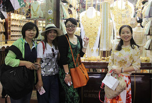 迪拜一度被譽(yù)為黃金城,當(dāng)?shù)氐狞S金亦一度因?yàn)榻饍r(jià)低于鄰近中東各國(guó)而造成大量外流。綠之韻人徹底領(lǐng)略了一把什么叫真正的金碧輝煌。由于阿拉伯人對(duì)黃金情有獨(dú)鐘,所以這里的黃金首飾工藝也特別精致別致,是國(guó)內(nèi)完全沒(méi)法比的,各式夸張的珠寶金飾,你只有在電影里的國(guó)王和皇后身上才會(huì)看到?;锇閭冪姁?ài)的黃金一起合影,更不忘把看中的心愛(ài)之物收入囊中。