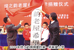本次希望工程25年活動(dòng)中,包括綠之韻集團(tuán)在內(nèi)的179家捐贈(zèng)企業(yè)和23個(gè)捐贈(zèng)個(gè)人代表獲得了“希望工程25年杰出貢獻(xiàn)獎(jiǎng)”,共青團(tuán)中央書記處常務(wù)書記賀軍科親自頒獎(jiǎng)。關(guān)愛生命、造福人類是綠之韻集團(tuán)一貫秉承的理念。綠之韻在發(fā)展實(shí)業(yè)的同時(shí),積極承擔(dān)社會(huì)責(zé)任,產(chǎn)業(yè)富民,回饋社會(huì),并于2007年專門設(shè)立了“綠之韻文化扶貧公益基金”,用于湖南農(nóng)村青少年扶貧計(jì)劃和希望工程助學(xué)行動(dòng)籌措資金。自2004年10月19日,綠之韻捐款18.18萬元捐建第一所綠之韻老屋希望小學(xué)以來,全國各地已先后有綠之韻沙龍希望小學(xué)、綠之韻珠山希望小學(xué)、綠之韻大橋希望學(xué)校、綠之韻后官希望小學(xué)誕生、綠之韻汶川希望小學(xué)、綠之韻惠民希望小學(xué)、綠之韻四子王旗希望小學(xué)、綠之韻湘鄉(xiāng)月山希望學(xué)校等10所希望學(xué)校相繼建成,給貧苦地區(qū)失學(xué)孩子們送出了知識(shí)、希望和夢(mèng)想。除此之外,綠之韻還積極開展了“綠之韻樹人行動(dòng)”、“綠之韻愛心圖書館工程”、“綠韻圓夢(mèng)?書香助學(xué)”等多項(xiàng)品牌主題公益活動(dòng)。十一年來,綠之韻一直致力于青少年公益事業(yè)、關(guān)注希望工程,累計(jì)捐款達(dá)到3000多萬元,于2014年9月被中華慈善總會(huì)授予“中華慈善突出貢獻(xiàn)獎(jiǎng)”,贏得了社會(huì)各界人士的廣泛好評(píng)。