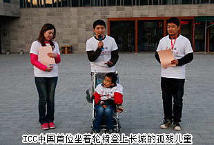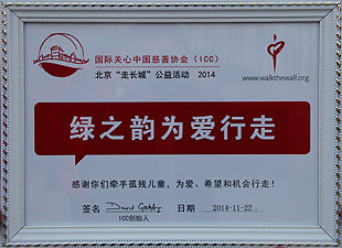 “走長城”活動(dòng)是國際關(guān)心中國慈善協(xié)會(huì)(簡稱ICC)創(chuàng)始人英國義工高永恩先生從2007年發(fā)起的,每年的金秋在加拿大、澳大利亞、英國、美國、新加坡、法國、愛爾蘭、荷蘭、中國香港、長沙、衡陽、三門峽的愛心義工們攜手為孤殘兒童行走。ICC在國外組織的為愛行走活動(dòng)主要是為中國的孤殘兒童來籌集善款,透過這個(gè)活動(dòng)籌集到的善款挽救了許多孤殘兒童的生命,幫助孩子們有了新的家,有了愛、希望和機(jī)會(huì)。