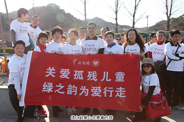 “你說在想我的時(shí)候,思念在腦海中行走。時(shí)間不曾,為我們停留,夢依然有一個(gè)缺口,是你用溫暖的雙手,帶我到黑夜的出口……”來自湖南、山東、河北等全國各地的近40名綠之韻愛心志愿者在綠之韻集團(tuán)全球營銷中心(中國區(qū))副總經(jīng)理方彥雄、全球營銷中心(中國區(qū))市場行政總監(jiān)梅其慧的帶領(lǐng)下集結(jié)北京慕田峪長城,與100多名國際關(guān)心中國慈善協(xié)會(huì)(簡稱ICC)來自各地的志愿者、愛心義工們相聚,參加ICC中國北京首屆“走長城”公益活動(dòng),一起為愛行走,為孤殘兒童加油。